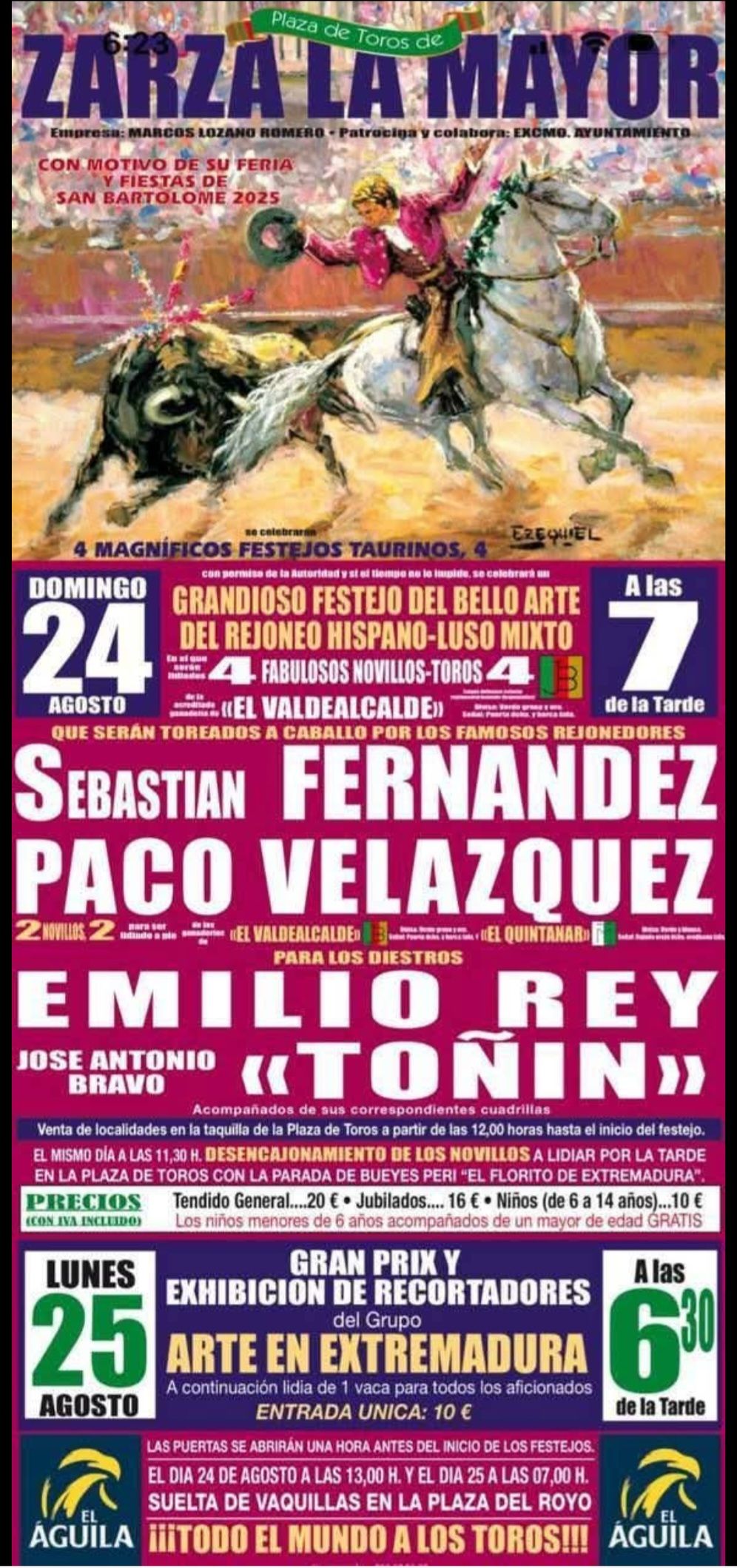 24 de Agosto - Festejos taurinos en Zarza La Mayor